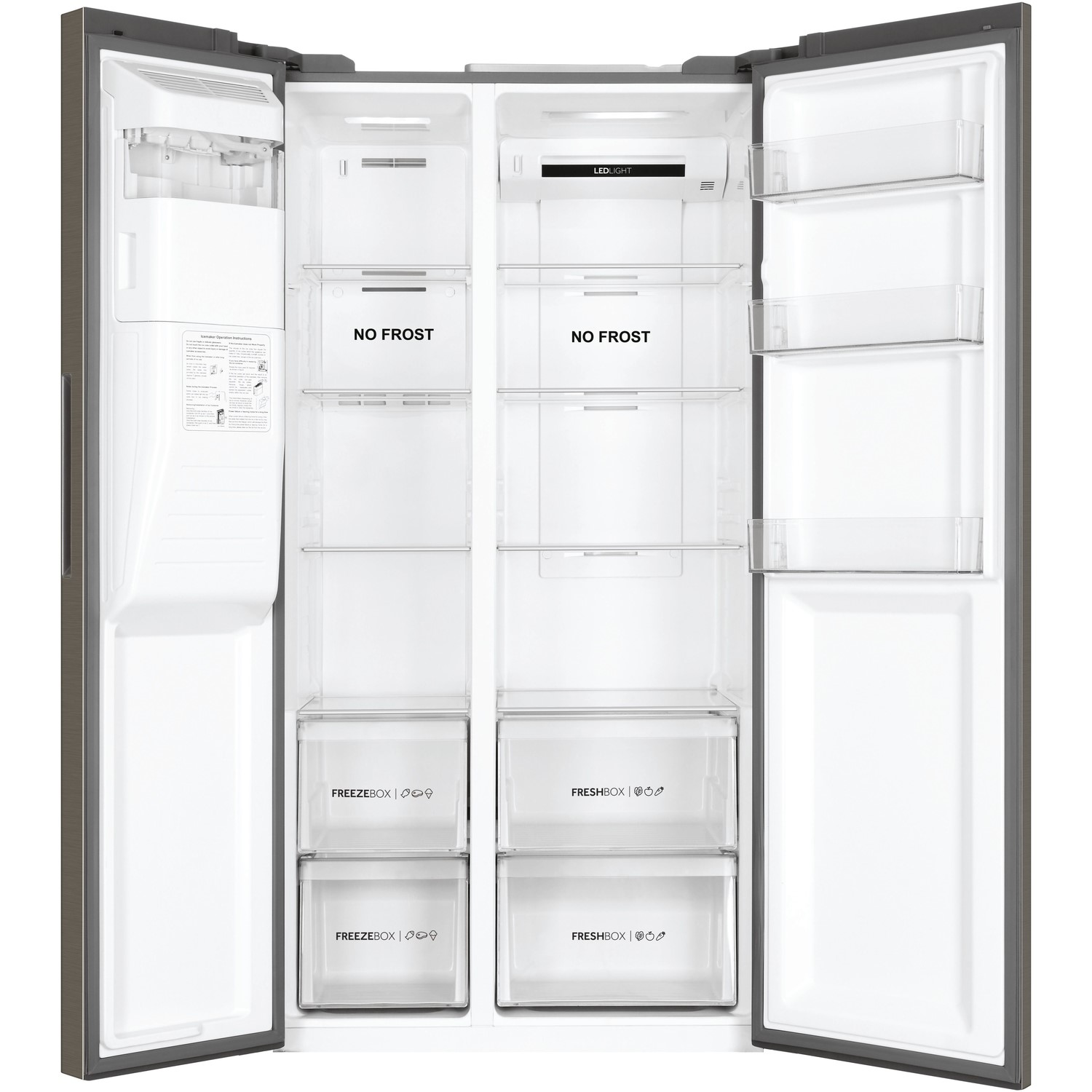 Haier’s highly practical two-door American-style fridge-freezers each contain Haier’s game-changing Fresher Tech® cooling technologies. These revolutionary innovations manage and regulate the interior compartments of Haier’s refrigerator to ensure conditions are always optimal in each area of the refrigerator so Haier’s food stays fresher for longer. These impressive XXL capacity refrigerators (up to 521 litres) integrate Haier’s knowledge of how to create usable products through precision engineering. This means they not only take care of Haier’s groceries, but they’re also easy to use and durable. The result is an energy-efficient refrigerator capable of adapting to fit any family’s needs.
